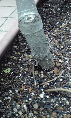 久しぶりにゆっくり庭を眺めて見れば、「死んだかなー」と思っていたイチジクの苗木から微妙に芽が出ていたり(根元に黄色い芽がチラッと見えるでしょ?)、