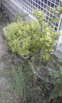 やっぱり零れ種から育ったユキヤナギがレモンを覆い隠すほど茂っていたり(レモンが横に傾いちゃったよ)。