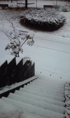 「こっちは雪が積もってますよー。明日は気をつけて来て下さいねー」とマダム'sの先生にメールを打ったら、「今日は東京でも積もりましたー(^^)」と返信が。