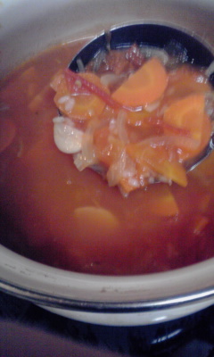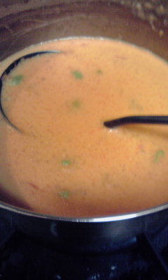 煮込んだ野菜を鍋からすくい、プロセッサーに入れてミキサーかけて、別の鍋に移す作業を黙々と繰り返すのだ(^^;