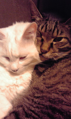 これで気味の悪い偽歯の画像を相殺できるでしょうか。我が家のニャンコ2匹ですよ。可愛かろー?