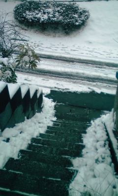 でもチリトリじゃ、路面の雪全てを片付けるのは無理なので、玄関から道路に下りる階段部分と、遊歩道まで自分が歩く分のみで止めておきました。