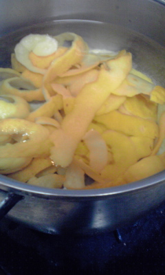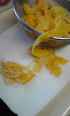 6 ペプチンを抽出している間に、皮を細切りにします。結構大変(^^;