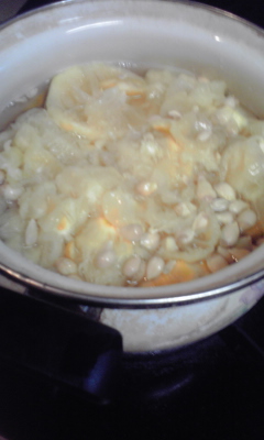 今夜はここまで。一晩置いて甘味を染みこませ、明朝にまた1時間ほど煮詰める予定です。