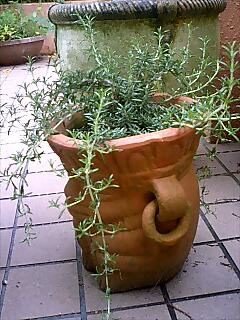 5月連休に買ったほふく性ローズマリー。元気に育って、ちゃんと枝垂れてくれている。