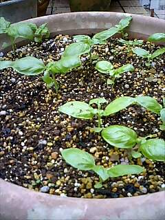 ついでにこれはバジルの苗。種を蒔いて育てているけれど、夜中にナニモノかが葉っぱを齧っているらしくボロボロだ。ワタクシの口に入る前に誰が食べているのやら。