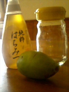 一日経過した保存容器の中身は、上に果実から出た水分が溜まり、底にはハチミツが溜まってましたよ。