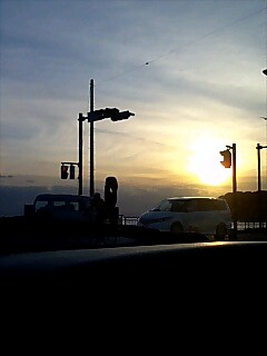 んで、これは車の中から見た由比ガ浜の夕日でございます。