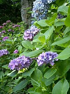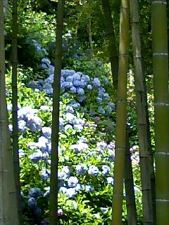 竹林の合間にあじさいが垣間見える場所もあり実に涼しげだ。