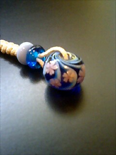 トンボ玉はキレイなものが一個欲しくて、ずーっと探していたのですが、今回小振りながらも美しい桜花模様のストラップを発見!2500円といいお値段でしたが、青と緑の二つを購入~。
