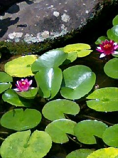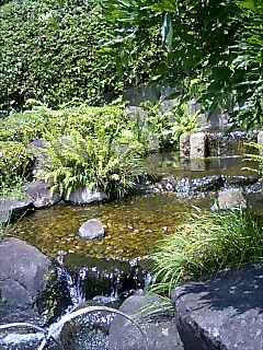 あちこちに水が流れ(人工的に汲み上げているためモーター音が無粋ではあったが)、スイレンの花が咲き、ムクゲが陰を作り、ノウゼンカズラのオレンジ色の花が揺れている。