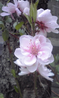 庭のミモザは盛りを過ぎて、今は満開の花桃が散り始めているところ。