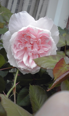 我が家の庭では今年も咲きましたよ、オールドローズちゃん。