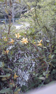 玄関アプローチではカロライナジャスミンとコデマリが。