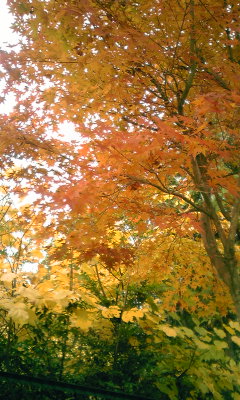 裏山は今が見ごろの紅葉です。赤や黄色が凄く綺麗。