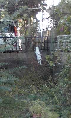 だが自分のテリトリーから出て行けばそれでいいのか、お向かいの敷地に逃げた墨汁猫をフェンス越しに威嚇。