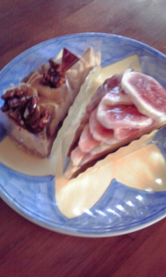 友人パティシエのところのケーキ二種類。いちじくのタルト&クルミのタルトです。