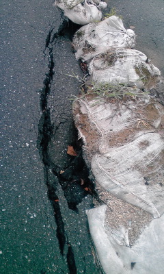 いつになったらこの陥没道路、直してくれるのだろうか。3月11日からずーっと放置状態なのですが。うーむ。