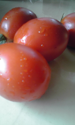 こちらの画像はプチ畑の朝摘みイタリアントマト。肉厚で美味しいですっ。